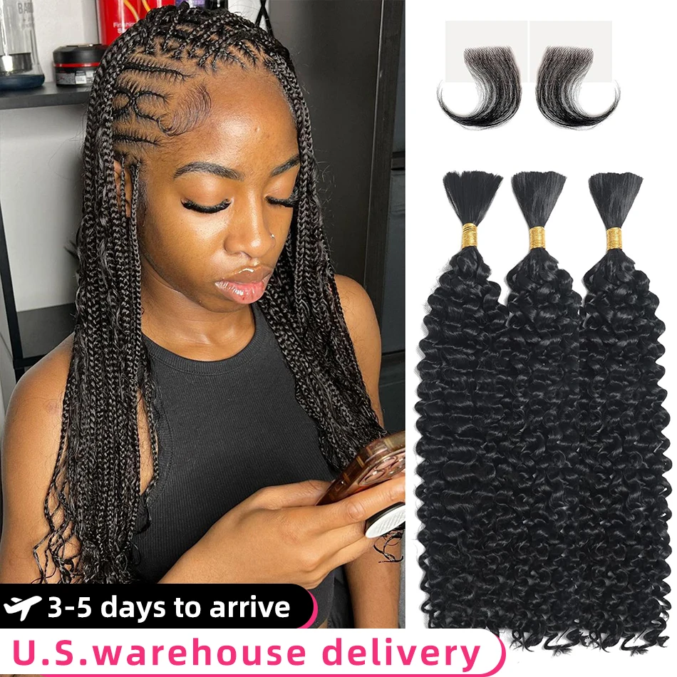 Braiding Hair Deep Wave Bulk Human Hair For Braiding No Weft Bundle 3 Bundles/Pack 16A Brazilian Water Curly Weave Black 26 Inch